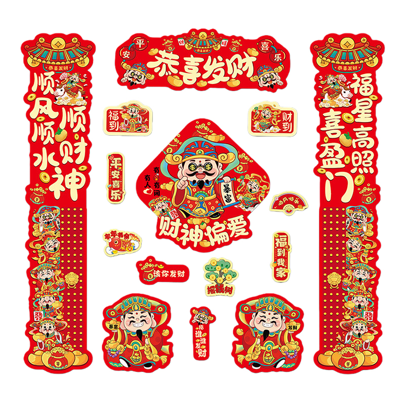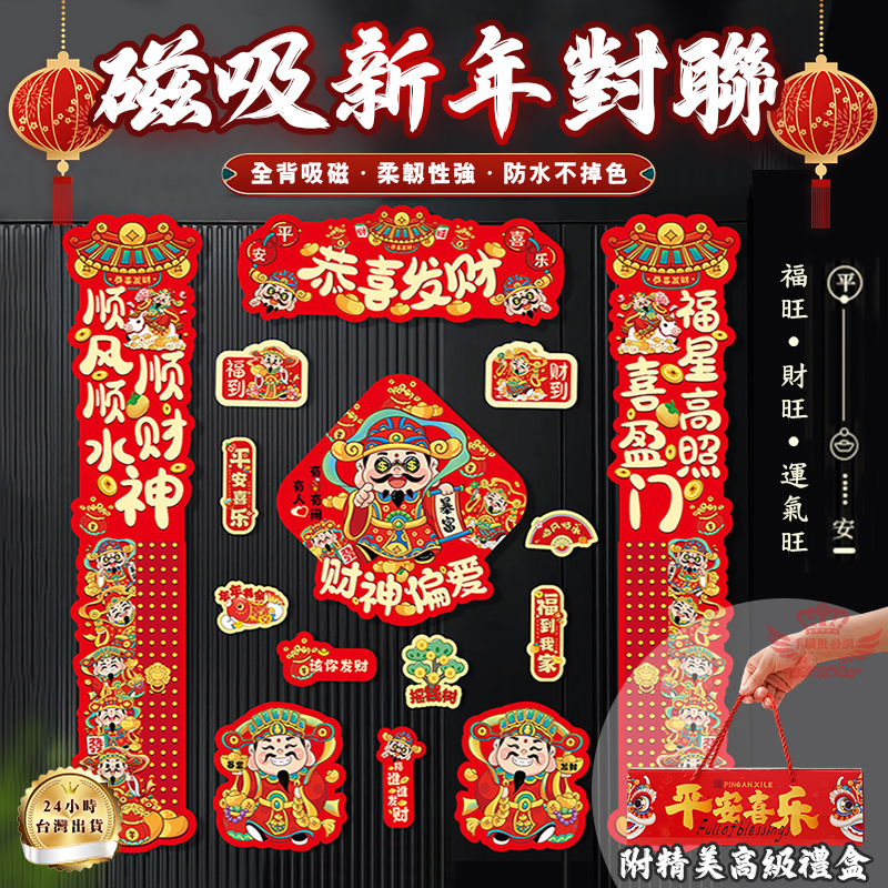 這款吸磁春聯不僅有對聯還有很多小的喜氣吸鐵,可貼於冰箱上或是有磁性的物件,