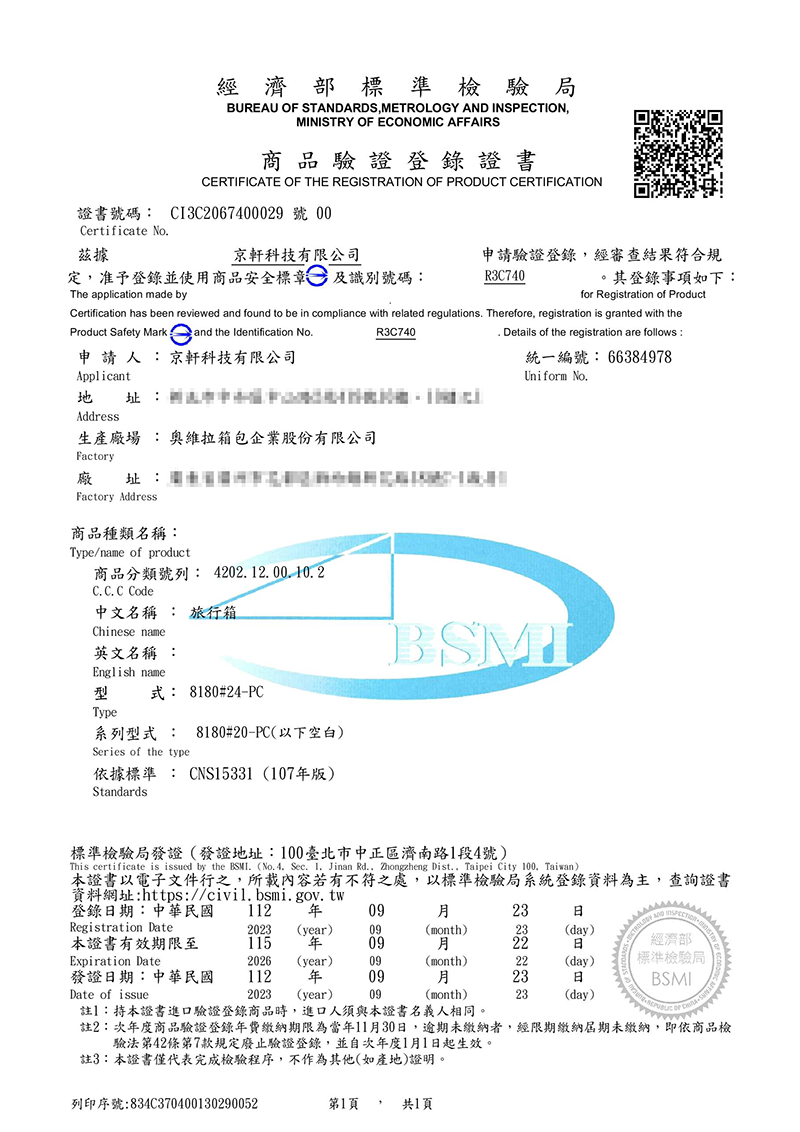 輪 子:20吋:單排萬向輪/24吋:雙排萬向輪